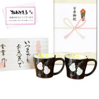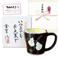 百寿 お祝い 100歳 プレゼント 無病息災を願った縁起物ギフト 有田焼 マグカップ ペア 六瓢色彩 百寿熨斗・メッセージカード付き 木箱入り