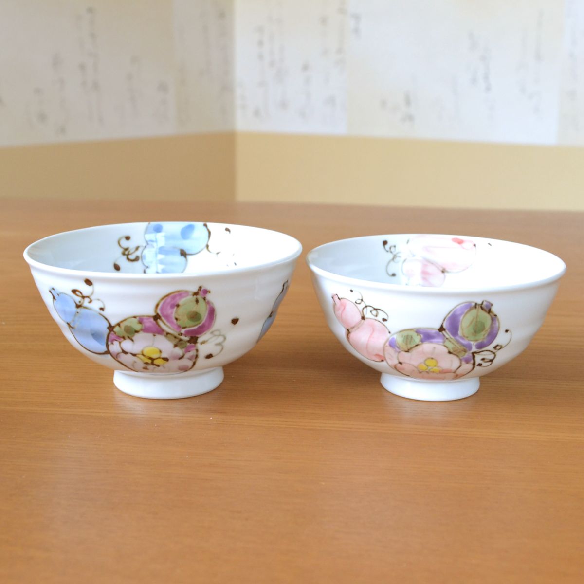 傘寿のお祝い 無病息災を願った縁起物ギフト 有田焼 夫婦茶碗 飯碗 ペア 花六瓢 メッセージカード付き・傘寿のし付き 木箱入り
