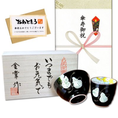 ◇ 傘寿お祝い(80歳)プレゼントに、手描きの有田焼が人気です。長寿を願う縁起物のデザイン
