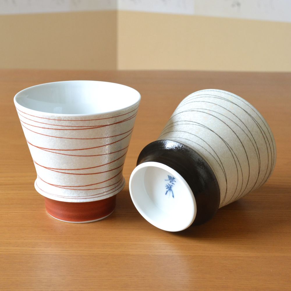 結婚祝い プレゼント 有田焼 焼酎グラス ペアー 寿 赤・黒 のし・メッセージカード付き