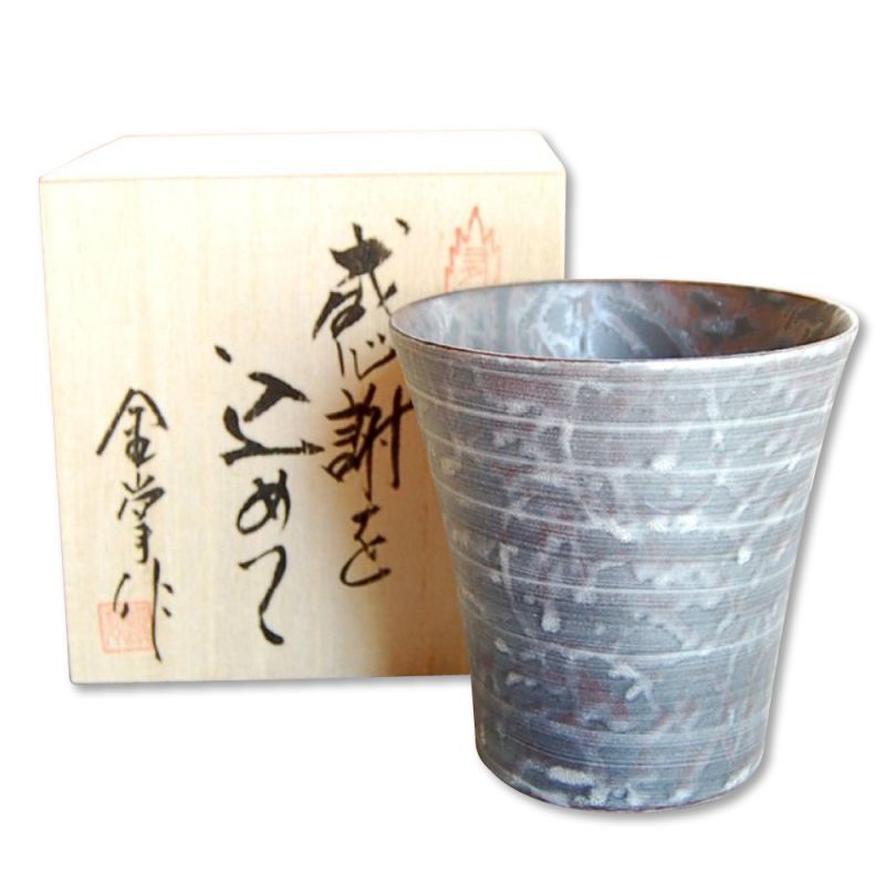 退職祝い プレゼント 焼酎グラス 感謝を込めた退職ギフト 星夢シルバーフリーカップ 有田焼 日本製 贈答用 [kansya-123210]