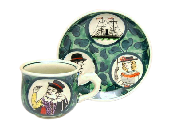 南蛮人(緑) コーヒー碗皿 [113037]