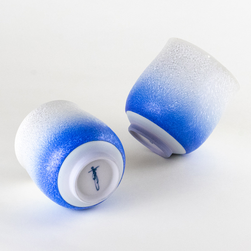 藍染水滴(ペア) 夫婦湯呑(馬場真右エ門窯/木箱付)
