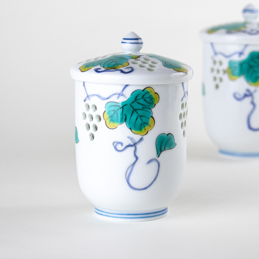 水晶彫ぶどう (ペア)蓋付湯呑(木箱入) [340014]